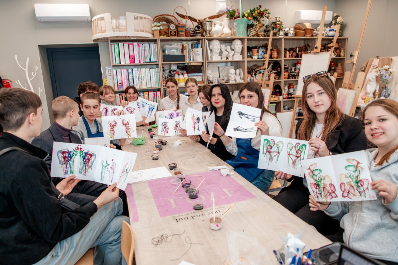 На кафедре дизайна гостей ждала презентация лучших студенческих работ — от графики до арт-объектов. Ребята с интересом наблюдали за работой молодых художников и сами попробовали силы в мастер-классе по живописи.