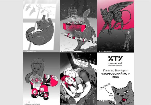 Этот проект — результат участия сразу в двух творческих испытаниях: конкурсе «Мартовский кот» и суровом арт-марафоне «Рисуем графику», организованном кафедрой дизайна ХТУ.
