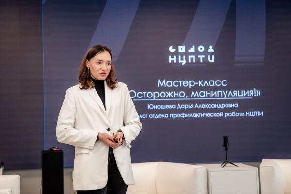 Организаторами лекции выступили Координационный центр противодействия идеологии терроризма и экстремизма и эксперты Национального центра информационного противодействия терроризму и экстремизму в образовательной среде и сети Интернет (НЦПТИ). Спикером мероприятия стала Юношева Дарья Александровна – психолог отдела профилактической работы НЦПТИ, которая на конкретных примерах разобрала со студентами психологические приемы, используемые злоумышленниками в сети и повседневной жизни.