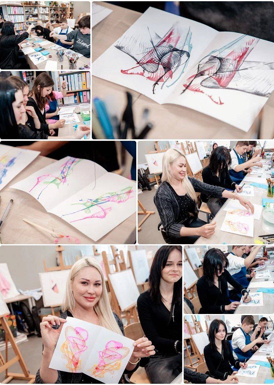 Сразу после этого началась самая интересная часть — практика! В лаборатории БПЛА Евгений Гилюк посвящал одну из групп в тайны управления беспилотниками. Параллельно в соседней аудитории кипела творческая жизнь: кафедра дизайна под руководством заведующей кафедрой Елены Якимчук устроила презентацию лучших студенческих работ и пригласила всех на мастер-класс по живописи.