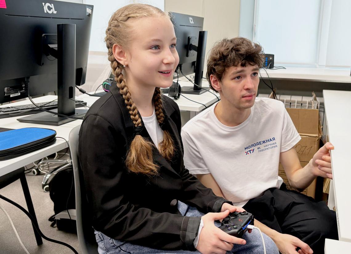 Для младших школьников специалисты Управления цифровых технологий, под руководством Гуцол Д. В., и сотрудники молодёжных лабораторий подготовили увлекательное знакомство с современным миром технологий: ребята с интересом управляли учебными мобильными платформами — как вживую, так и в симуляторе — и испытали очки виртуальной реальности.